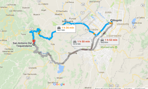 Para llegar al Centro de Meditación Dhamma Nandanavana hay dos vías de acceso, vía Mosquera (62.1 km, 1h 36min) y vía Soacha (57.2km, 1h 50min). Una vez en el pueblo de San Antonio, el Centro de Meditación queda a cinco minutos, enfrente de una escuela.